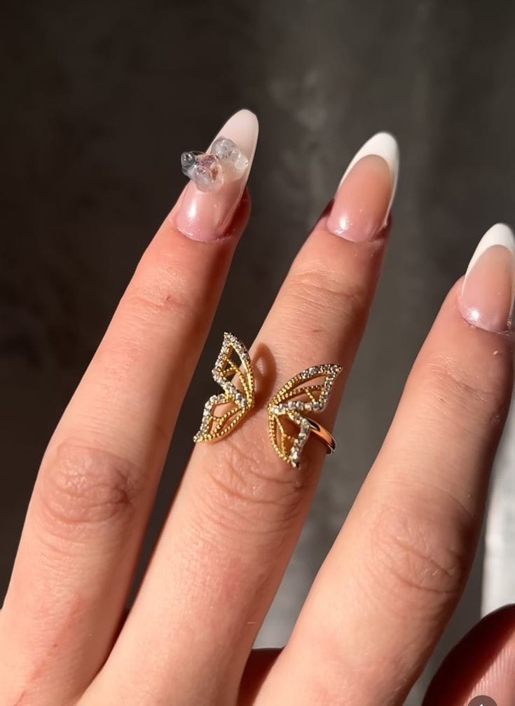 An open butterfly-inspired ring adorned with fine crystal detailing. Graceful, eye-catching, and crafted to sparkle with every movement.