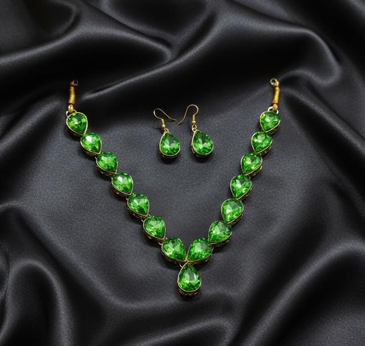 Bright green pear crystals linked in a flowing V silhouette, delivering a bold pop of color with radiant clarity.