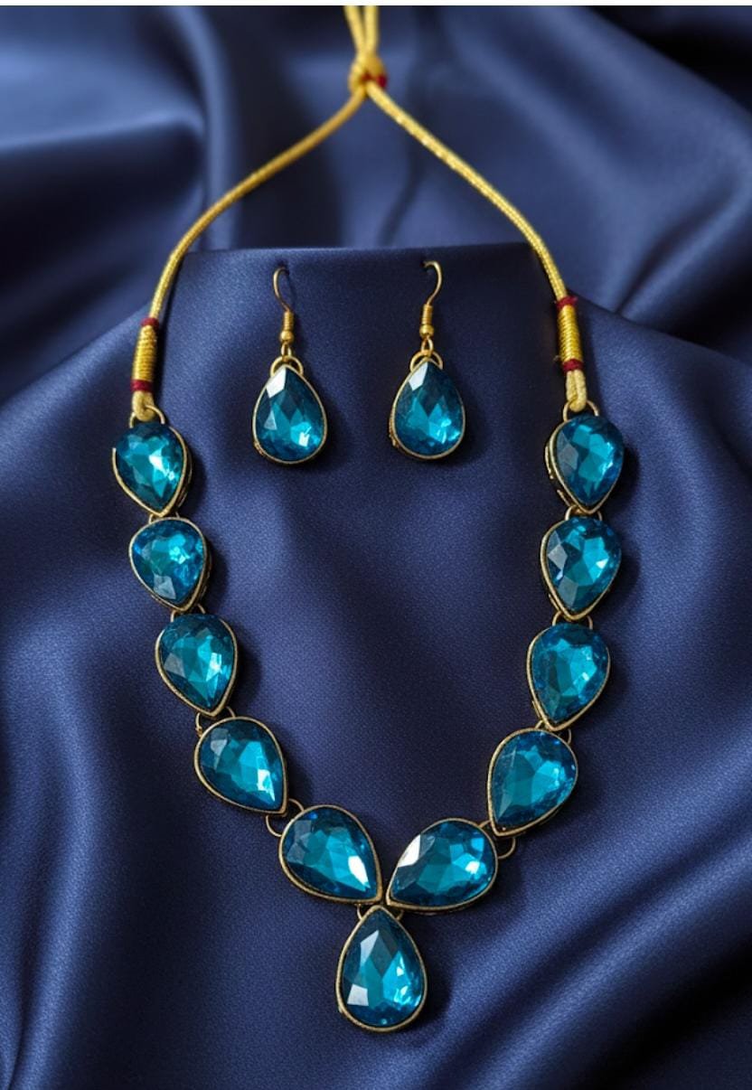 Brilliant aqua-toned pear stones arranged in a graceful curve, finished with matching drops. A vibrant statement that feels both festive and refined.