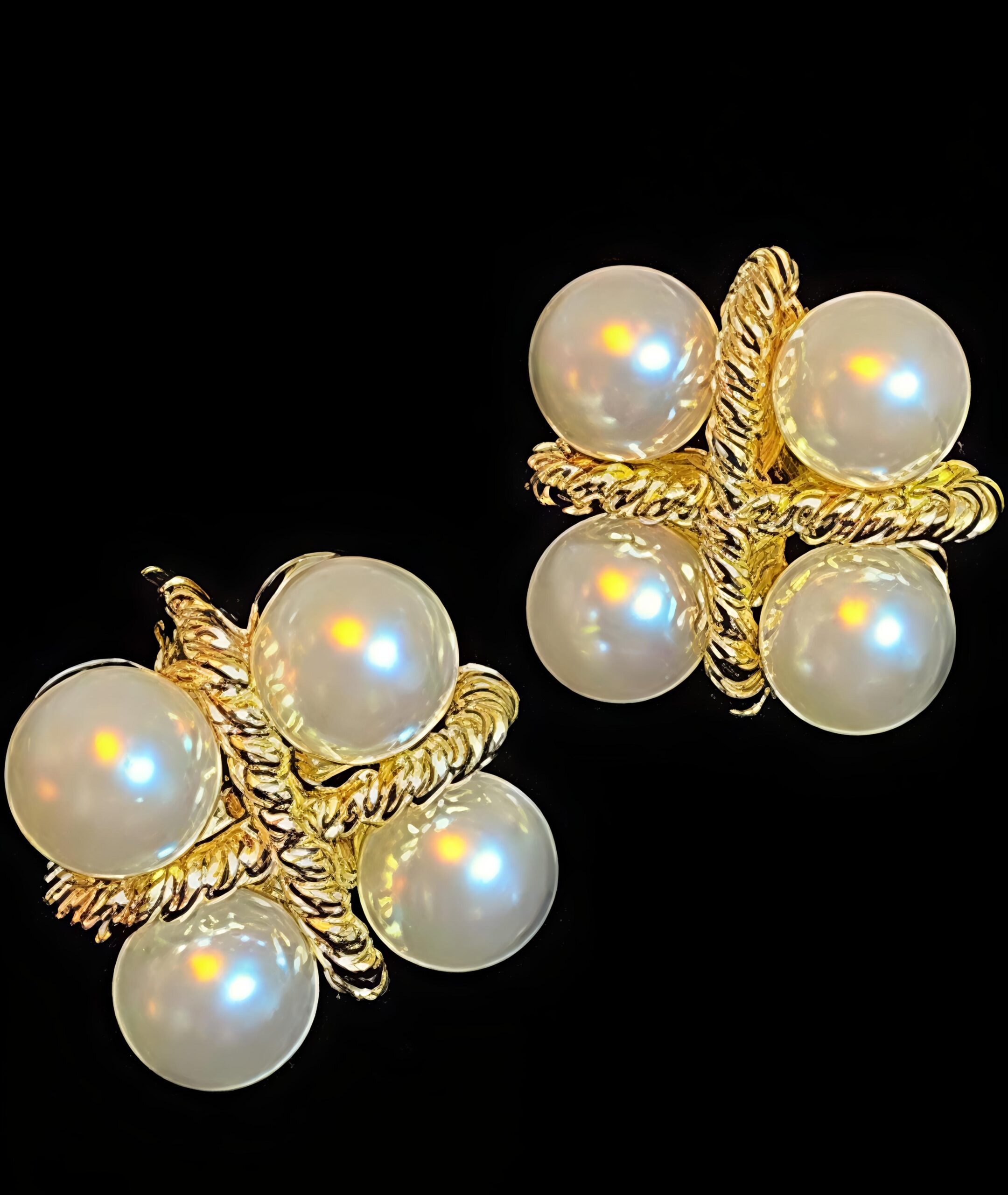 Textured gold embraced by luminous pearl clusters that reflect timeless elegance.