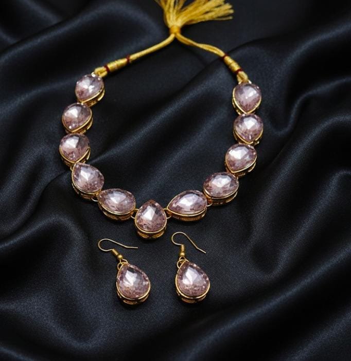 Soft blush faceted drops set in warm gold, creating a delicate shimmer that flatters both traditional and contemporary outfits.
