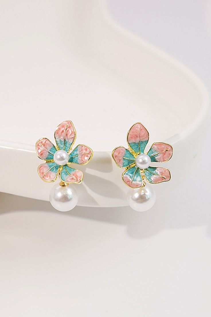Hand-painted floral studs with a pearl drop finish. Feminine, playful, and made to add a soft pop of color.