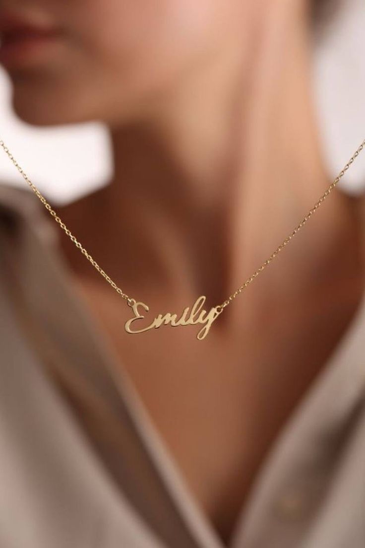 A sleek custom cursive name pendant crafted in polished gold. Minimal, personal, and timeless — designed to carry your identity in style.